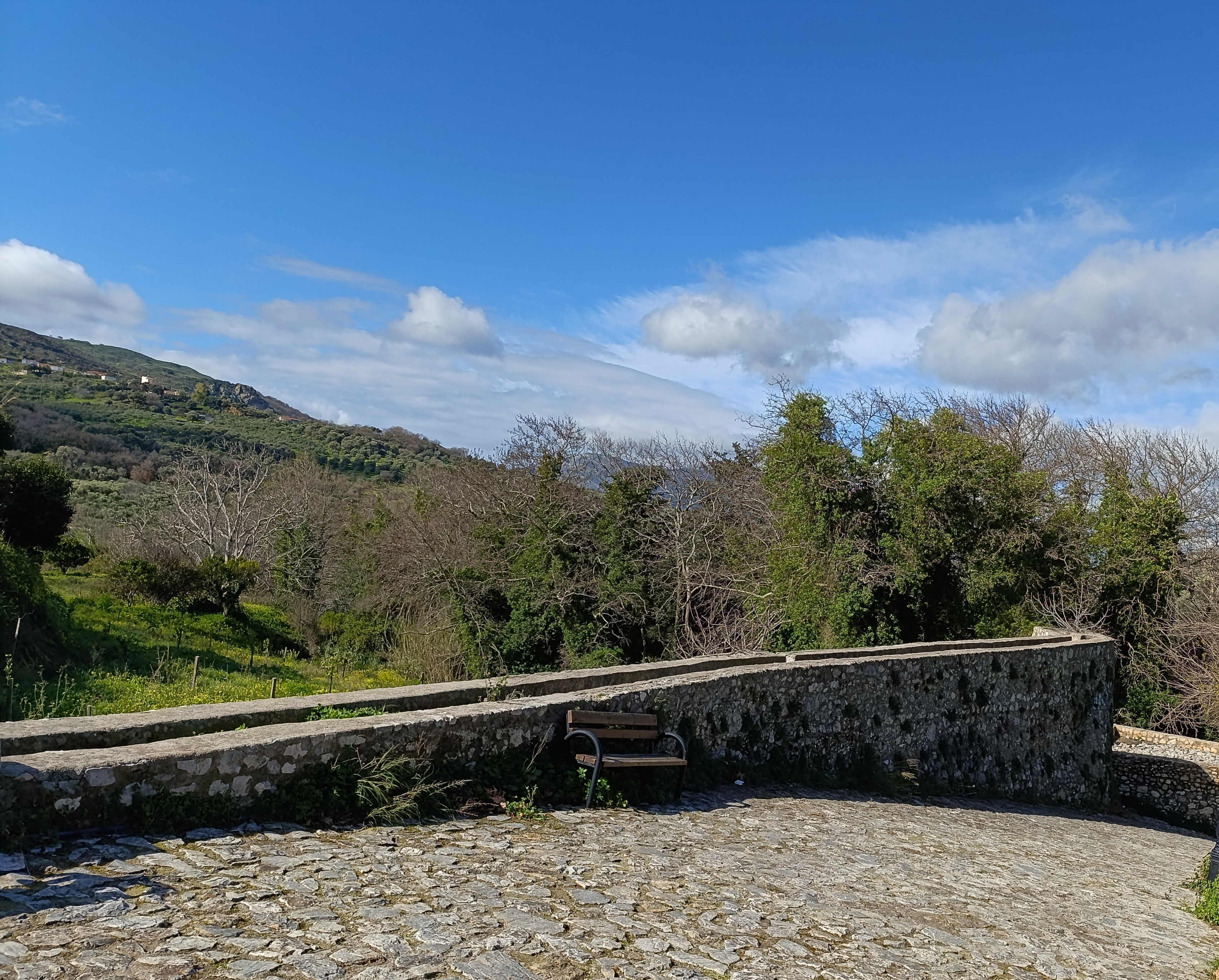 Spili takes its name from the word for cave, echoing the many hollows and hidden caverns that surround the village. Among them once lay the sacred cave of Peristere, where legend tells of a quiet miracle-a figure of the Virgin, shimmering upon the stone within, as if the mountain opened its heart to the inhabitants. The village is known for its warm, lively heart, family-run restaurants and cafes, traditional embroideries and woven fabrics, the local gifts of the land, raki, wine and olive oil. At its centre, twenty-five Venetian lion-headed fountains (Kefalovrissi) release their crystalline waters into a shaded plateau beneath large plane trees. The springs are believed to offer some of the purest water in Crete, flowing from Mount Vorizi, part of the Psiloritis range that rises through the island’s central spine.