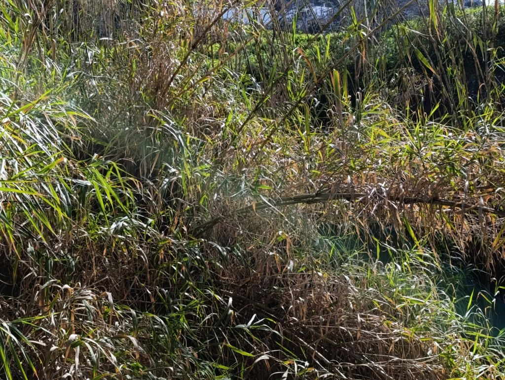 A member of the grass family (pictured above), these water-loving tall reeds grow by the side of the stream. Their thick stems are so strong that strong winds and rushing waters do not break them. They are also natural filters; their strong roots help filter pollutants from the waters. During flowering, this plant produces large feathery plumes at the top of the stalks.