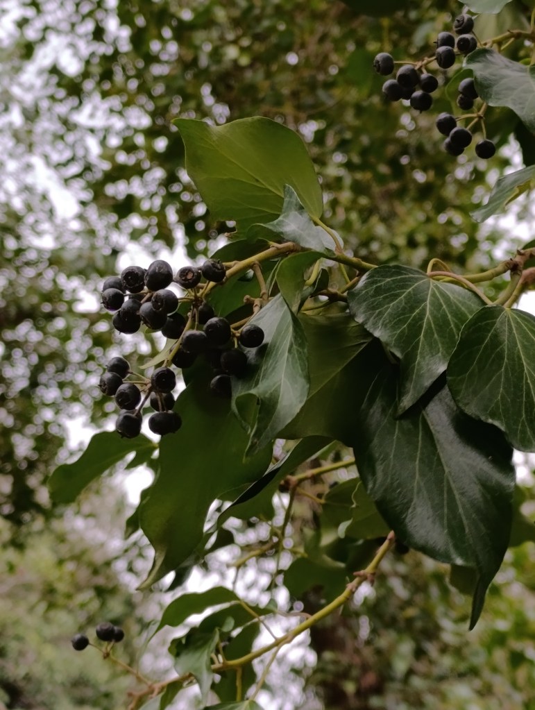 The Hedera helix, the wild ivy, is a woody evergreen climber that moves through the landscape with rapid determination. Its long aerial roots and tendrils cling to bark and stone, allowing it to spiral up trees and old stone walls, sometimes reaching thirty metres as it winds its way towards the light. The leaves, dark green, heart-shaped, and veined with pale lines, form a living tapestry. In late season, small yellow flowers gather into spherical umbels, later giving way to purple-black berries that feed birds throughout the winter. Across the old Greek world, this ivy was believed to be sacred to Dionysus, the god of wine and ecstatic renewal. It symbolised eternal life, continuity and regeneration- qualities reflected in its evergreen persistence.
