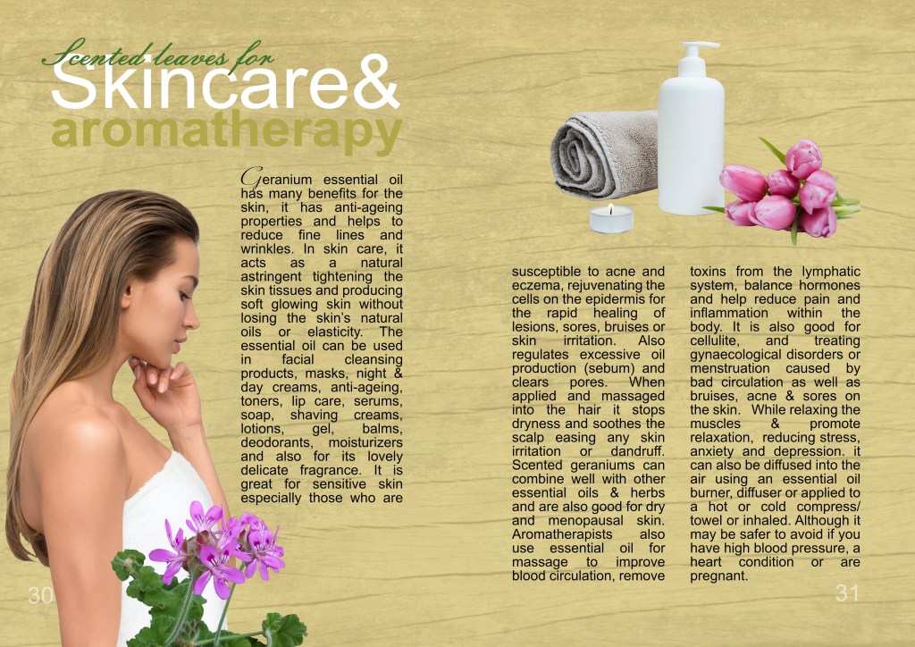 This is a mini-guide to Scented leaf pelargoniums and their uses in food and beverages, potpourri and scented pillows, essential oils, aromatherapy and skin care, and flower bouquets.