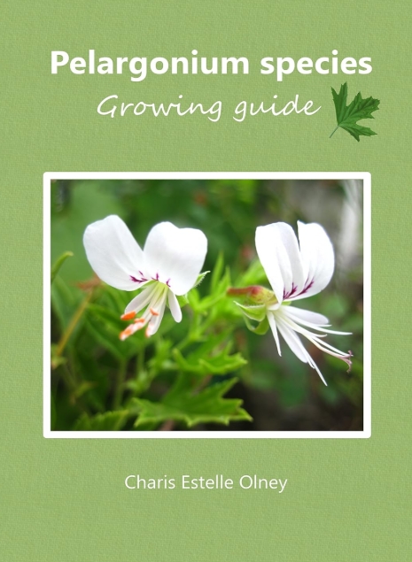 A guide to growing Species Pelargoniums from the main book “A gardeners guide to the scented pelargonium species” by Charis Estelle Olney , it includes information on growing pelargoniums from seed, special seed treatments, transplanting seedlings, damping off, hardening off, root bound signs, re-potting pelargoniums, fertilizers, pruning pelargoniums, stem cuttings, natural remedies and pests & diseases