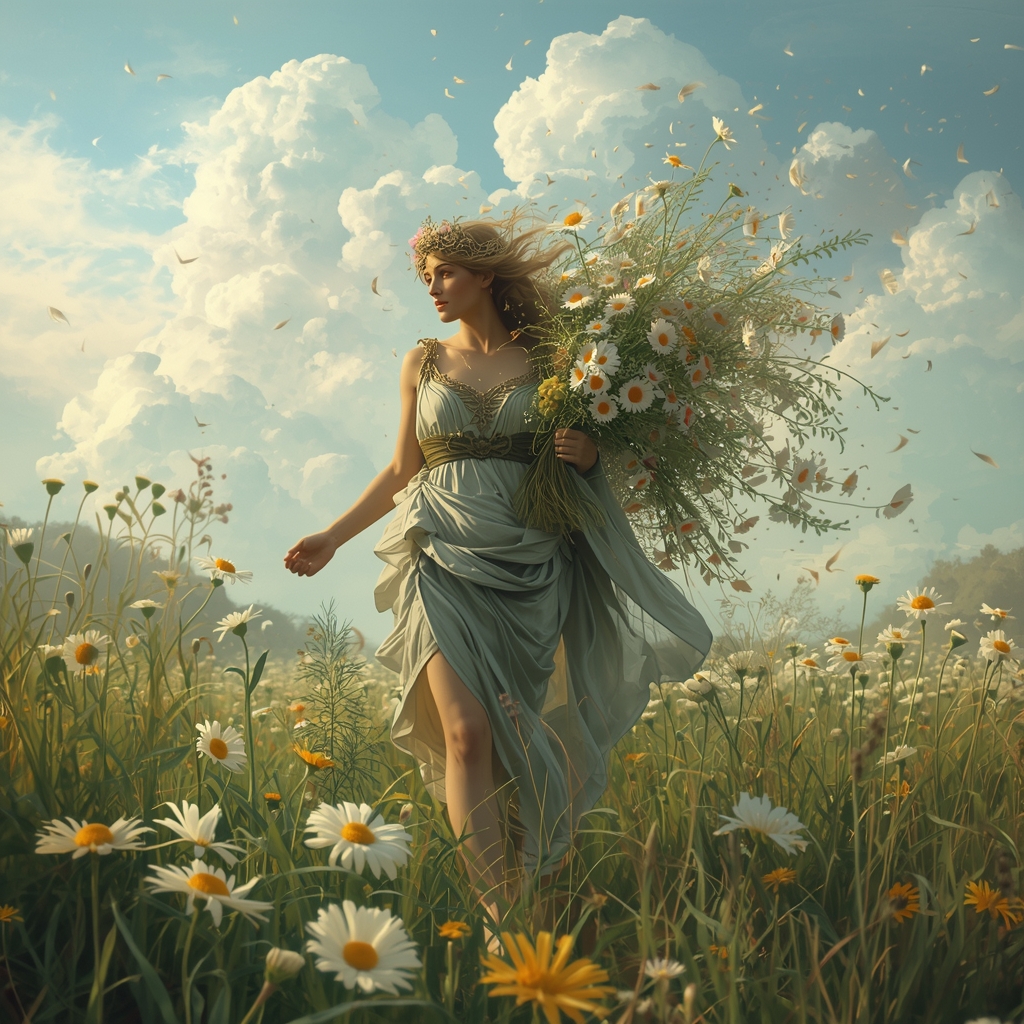 Chloris, the goddess of flowers, radiates her love, grace, and beauty across the woodlands, meadows, wetlands, mountains, gorges, and plains of ancient Greece. She was the nymph of Elysium, the island of the blessed, symbolising spring, growth and renewal. It is said that she exhaled roses from her lips and scattered the first seeds across distant lands. Wherever she wandered, beauty followed.
